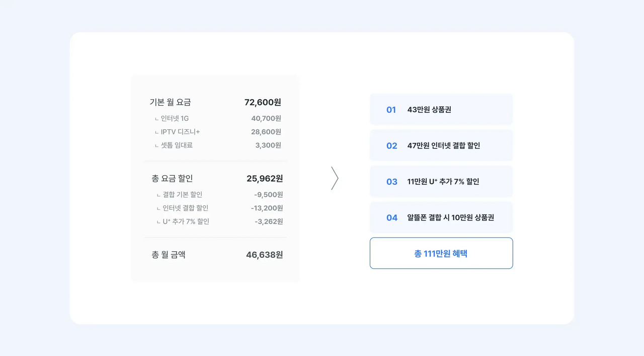 최대 111만원 혜택을 받을 수 있는 결합 상품 예시