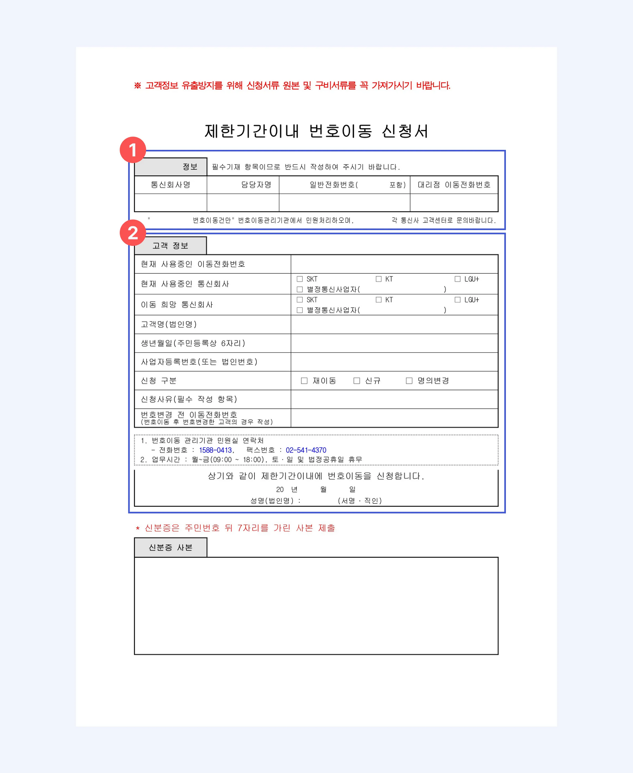 제한 해지를 진행하는 방법은 어렵지 않지만 서류를 통해 작성해야 할 내용이 생각보다 많아서 어렵게 생각하시는 분들이 많아요. <알뜰폰 3개월 이내 번호이동 제한 해지하는 방법> 가이드를 확인하시면 보다 더 자세한 내용을 확인할 수 있어요.