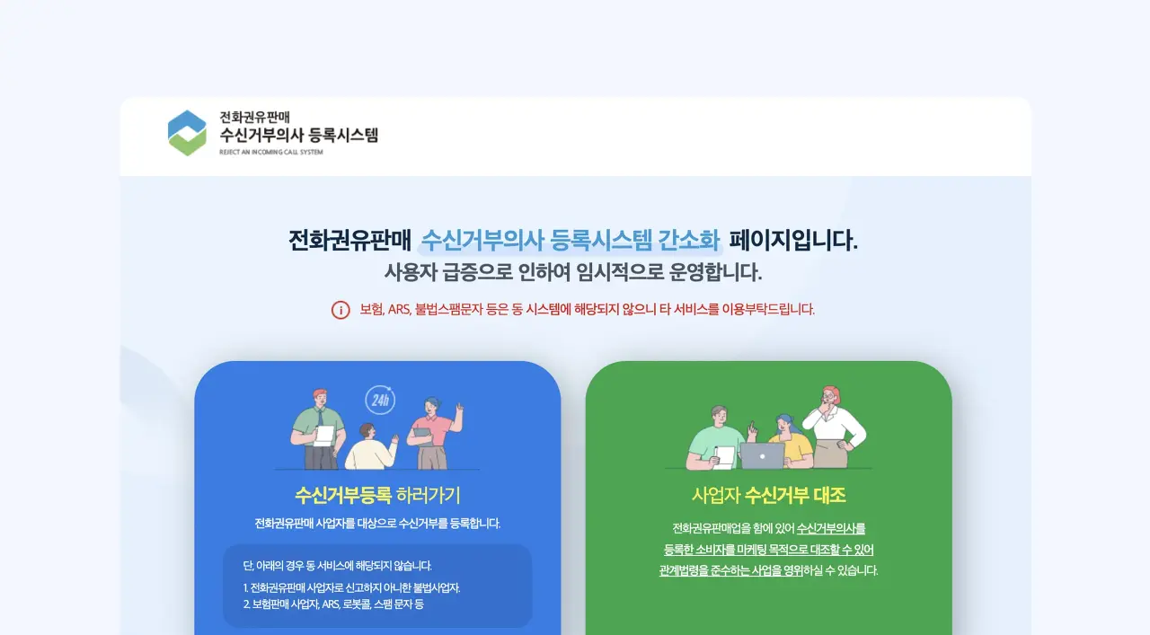 - 휴대폰 번호 인증을 통한 수신 거부 등록