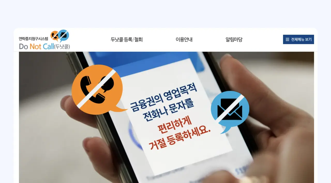 전화권유판매 사업자를 대상으로 하는 수신거부 등록은 공정위에서 운영하는 두낫콜에서 거부 등록을 하면 돼요.