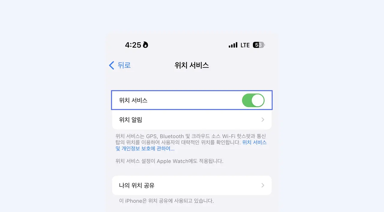 휴대폰 설정에서 위치 서비스 또는 GPS 설정을 켜주세요