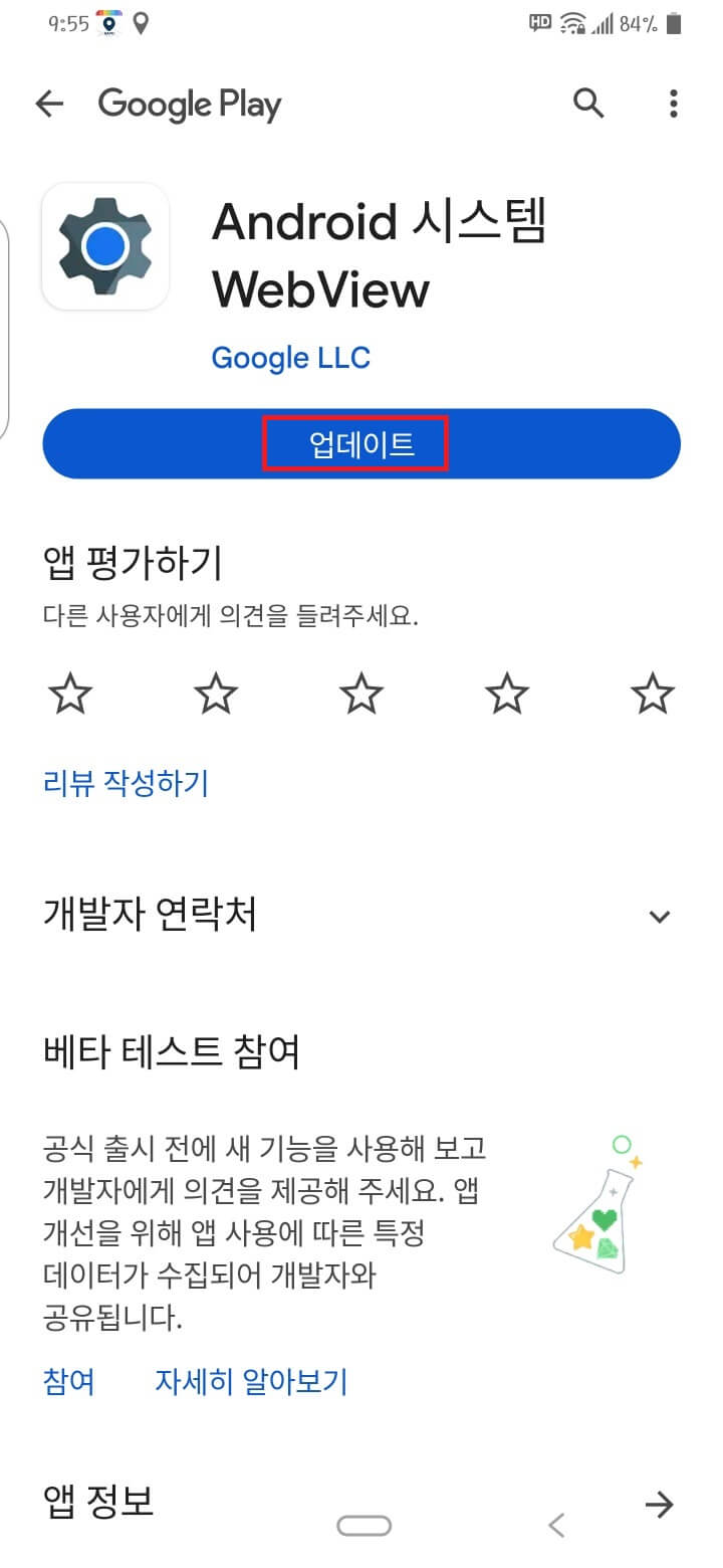 업데이트 버튼을 누르고 설치를 진행합니다.