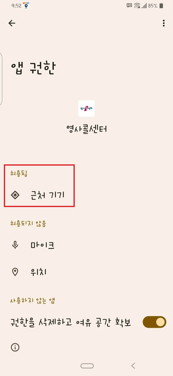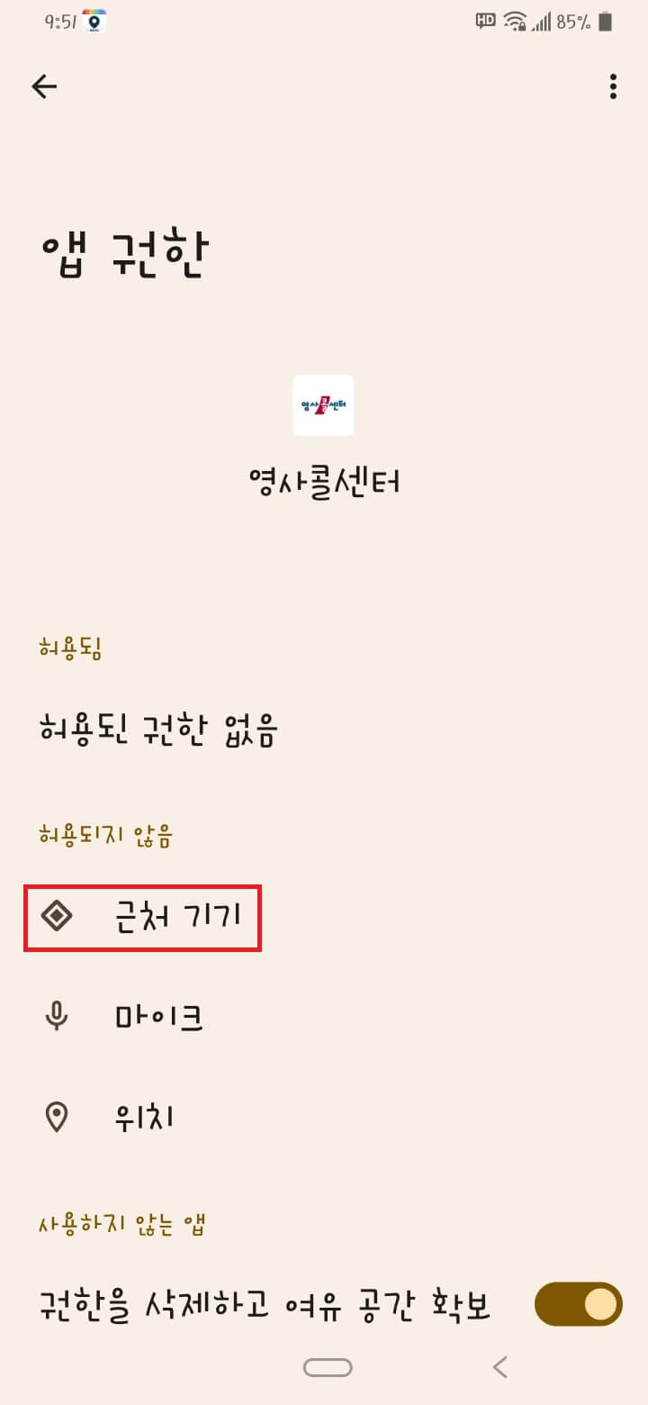 근처 기기가 허용됨으로 변경된 것을 확인할 수 있습니다. 나머지도 같은 방법으로 진행.