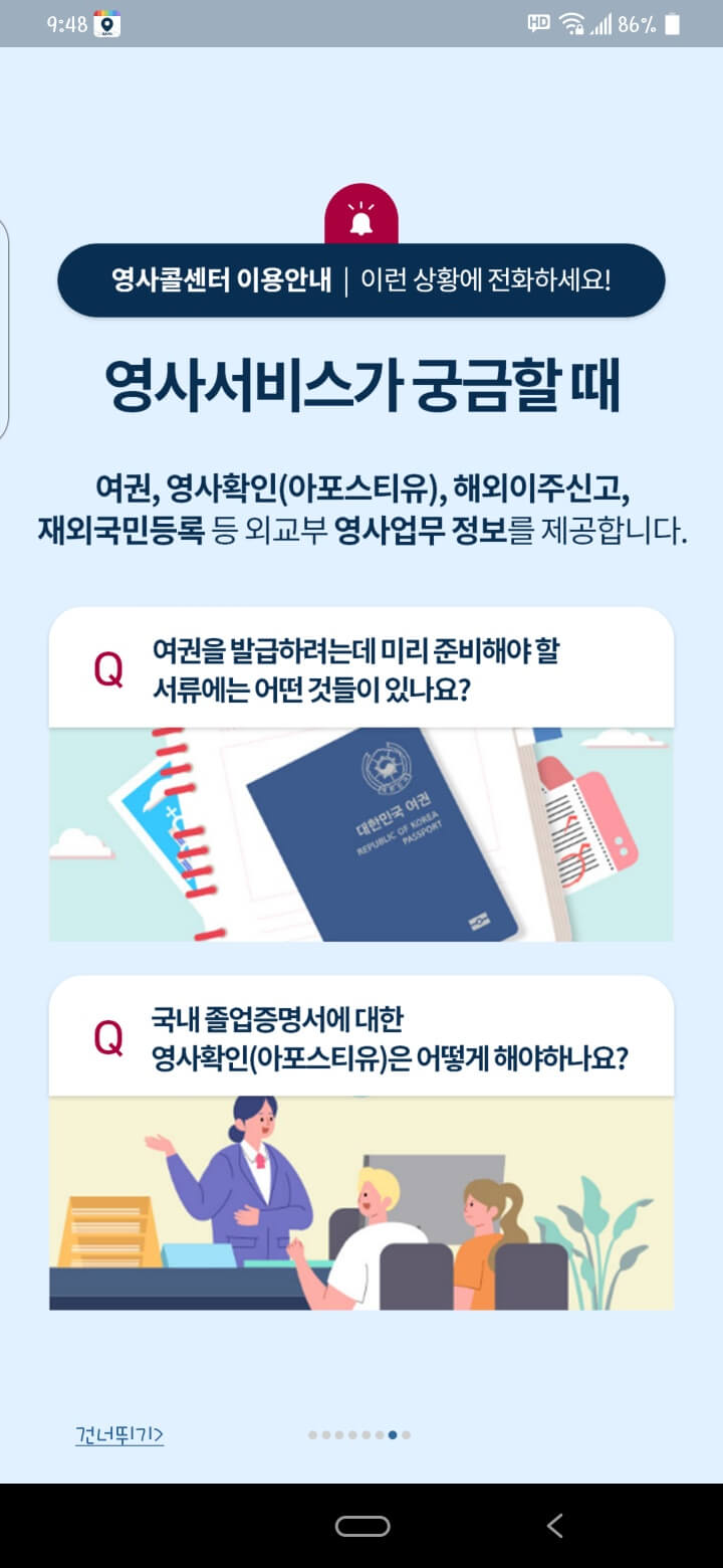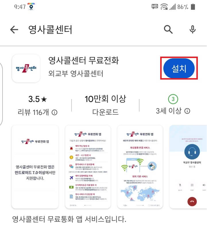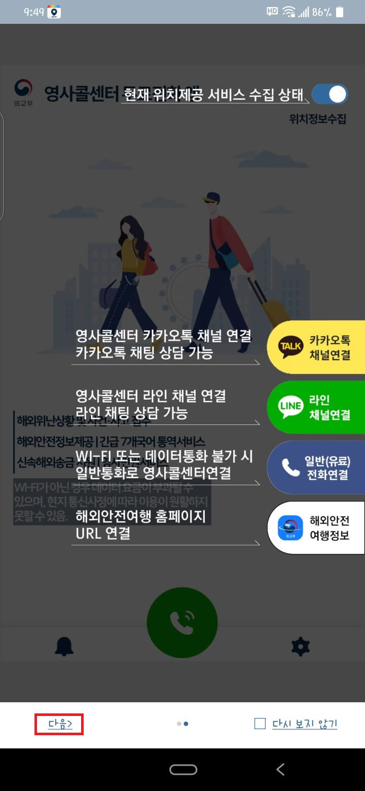 다시 영사콜센터 앱을 누릅니다.