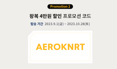 프로모션 코드는 비행 편 예매 시 AEROKNRT 를 프로모션 코드란에 적어주시면 바로 적용이 된 답니다!