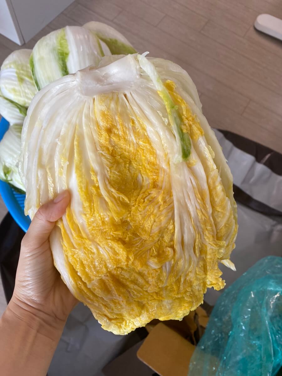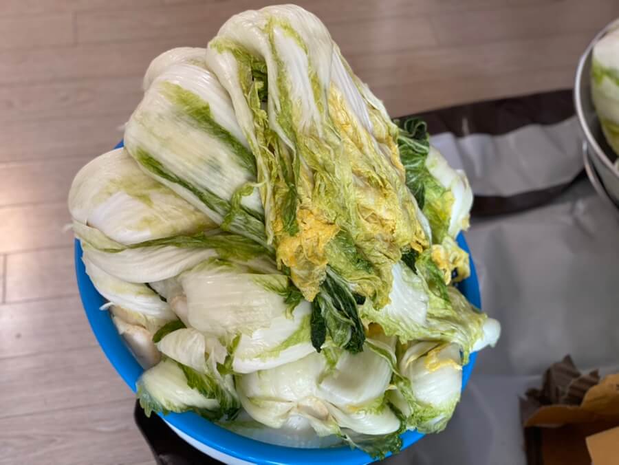 - 배추 손질: 배추를 잎마다 소금을 뿌려 절여주고, 담그는 시간 동안 가끔 뒤집어줍니다.