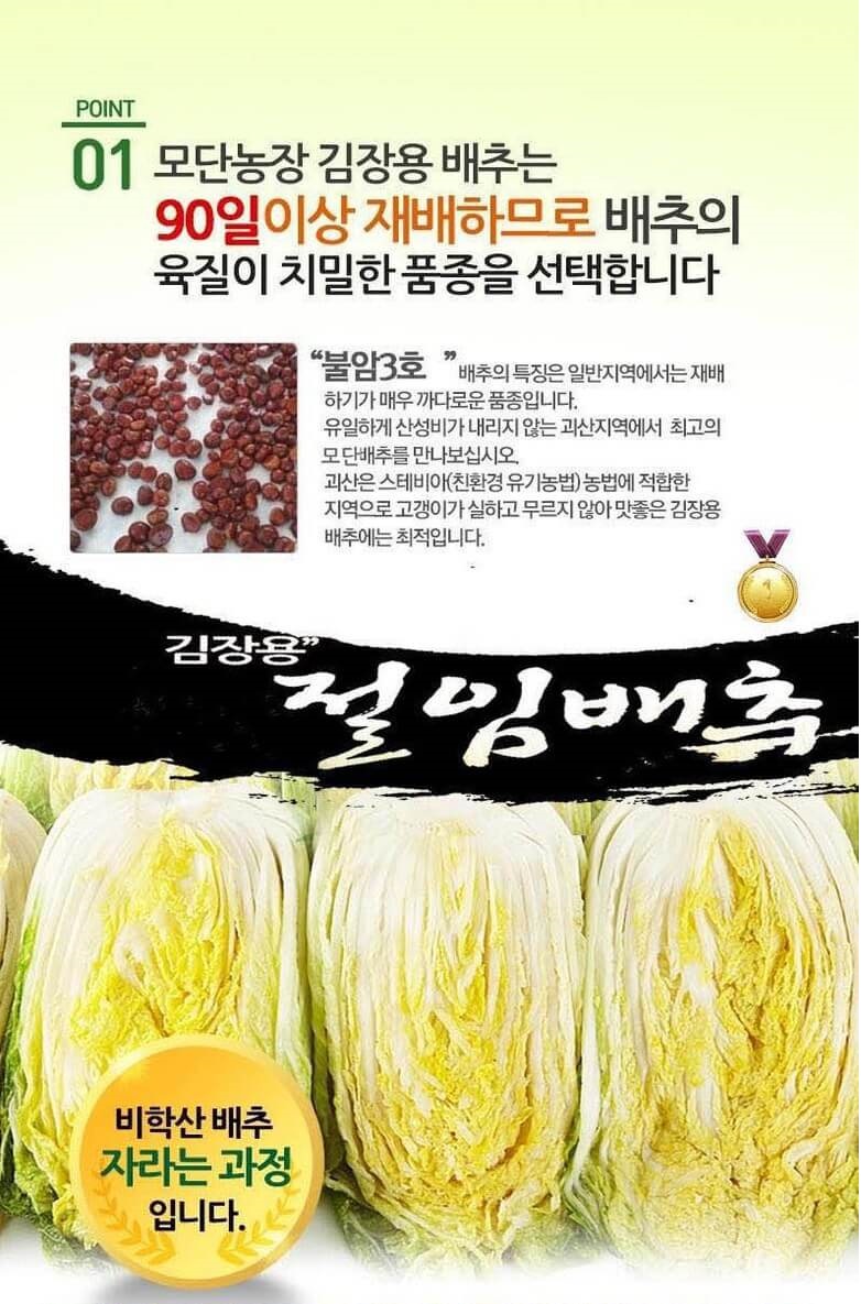 칠성면 비학산 자락에 위치한 모단농장은 친환경농업을 추구하며 특산물과 재배를 통해 지역의 농산물을 기르고 있습니다. 이때까지도 우리 농산물을 만들기 위해 최선을 다하며 정성을 쏟고 있습니다. 괴산의 맑고 건강한 환경 속에서 자라난 배추는 우리의 건강한 삶을 위한 최상의 재료가 되어줍니다.