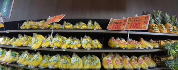 아보카도와 키위는 하나에 100엔, 바나나는 한송이에 100엔입니다!!! 파인애플은 500엔입니다.