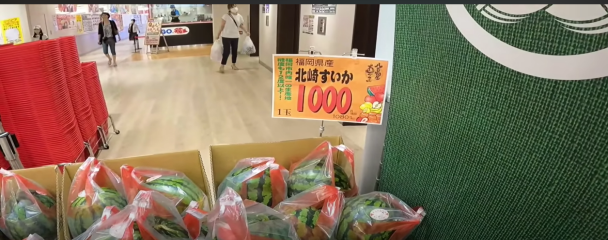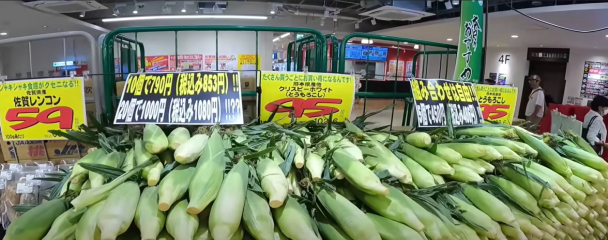 옥수수 하나에 95엔에 판매되네요. 수박은 하나에 1000엔이고 멜론도 하나에 1000엔입니다.